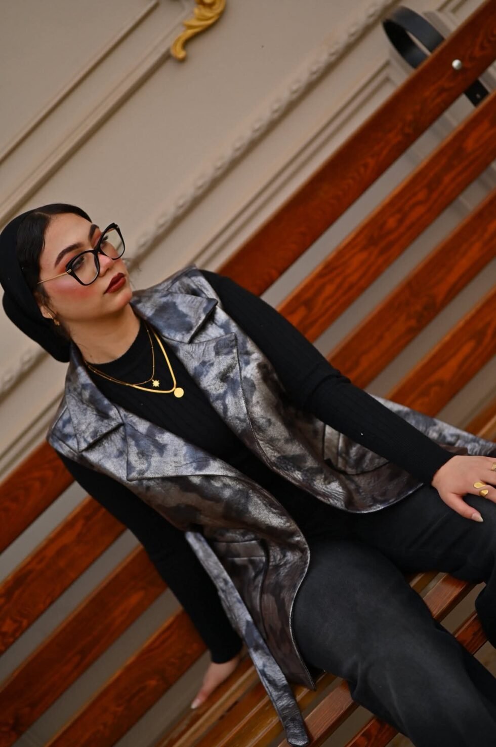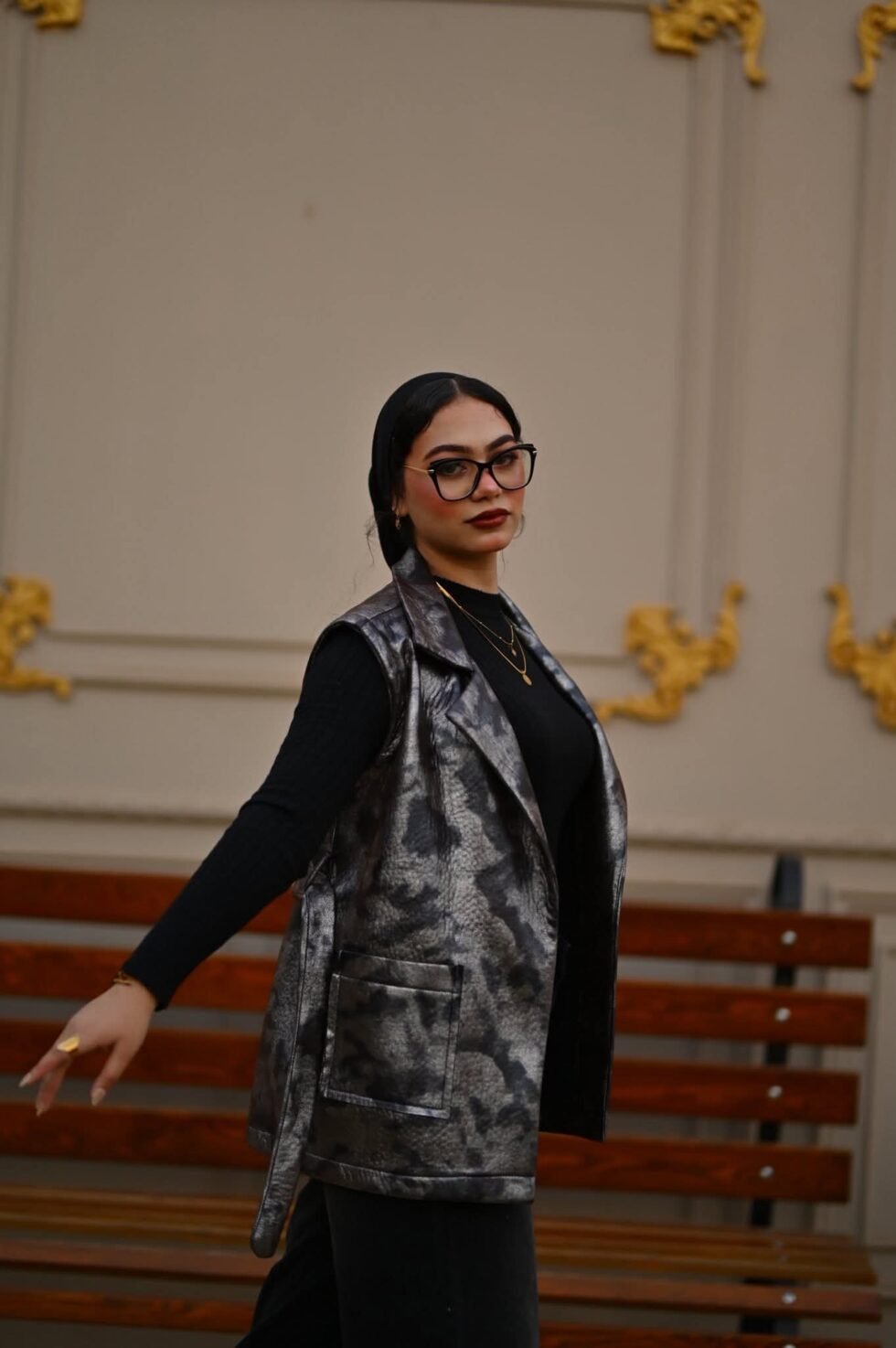 Stylish croc-pattern faux-leather vest with a long cut and front pockets — perfect for layering and elevating winter looks.
