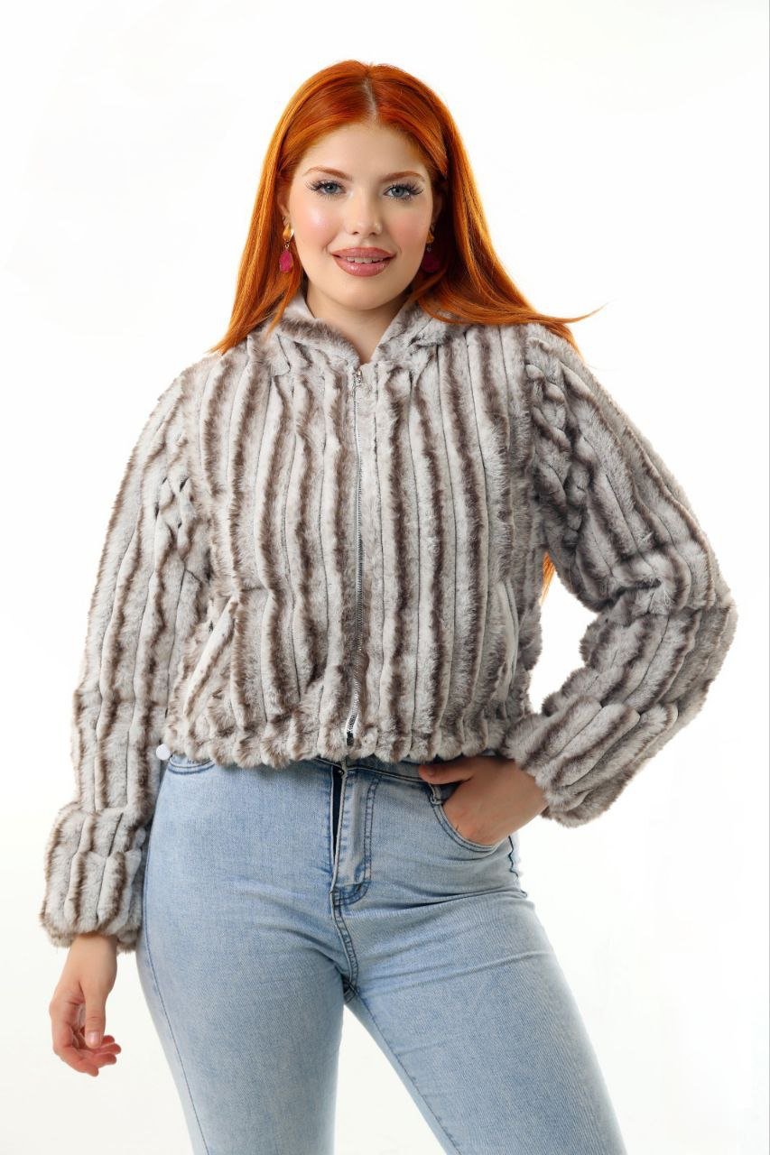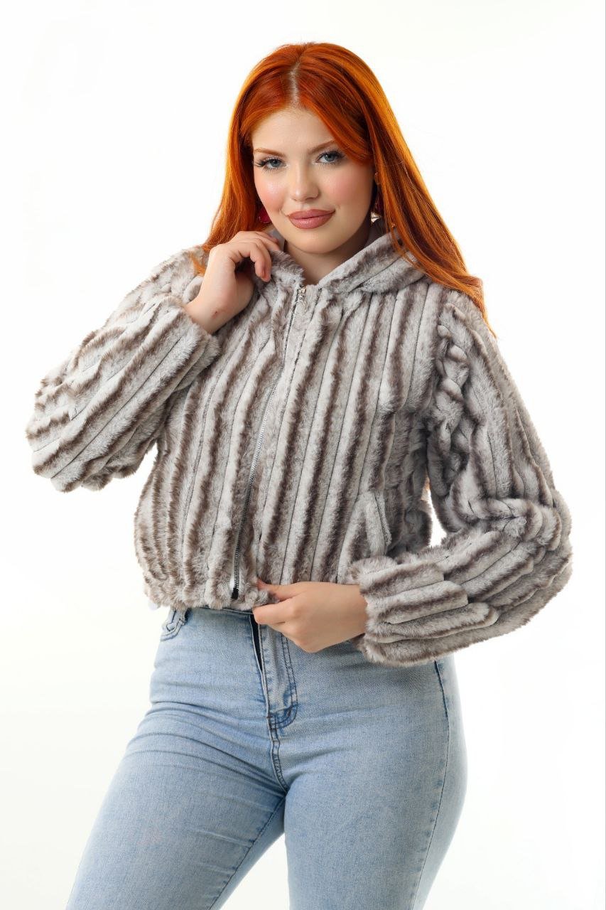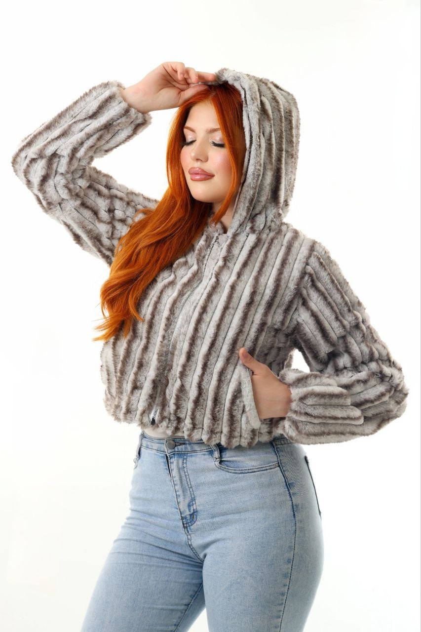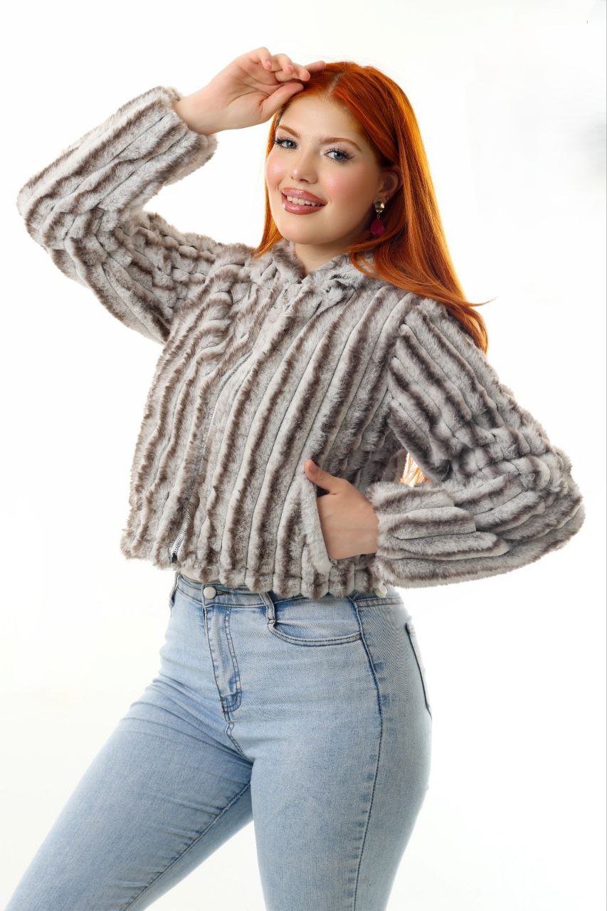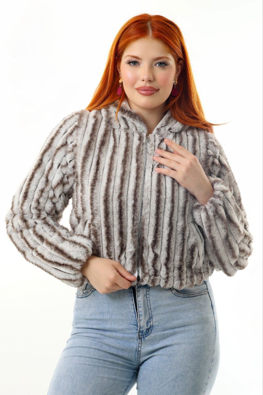 This women’s faux-fur jacket offers a modern charcoal grey shade with a beautifully textured ribbed pattern. Made with ultra-soft, warm faux-fur fabric, it delivers a cozy feel while maintaining a lightweight, comfortable fit. The jacket includes a smooth front zipper, warm inner lining, and long plush sleeves for maximum winter comfort.