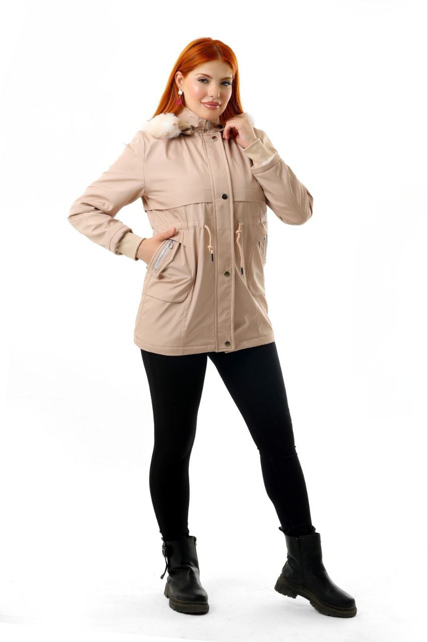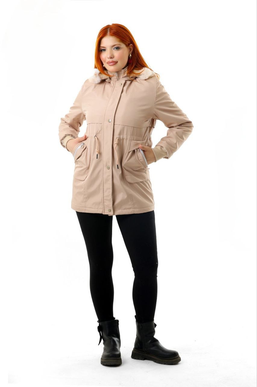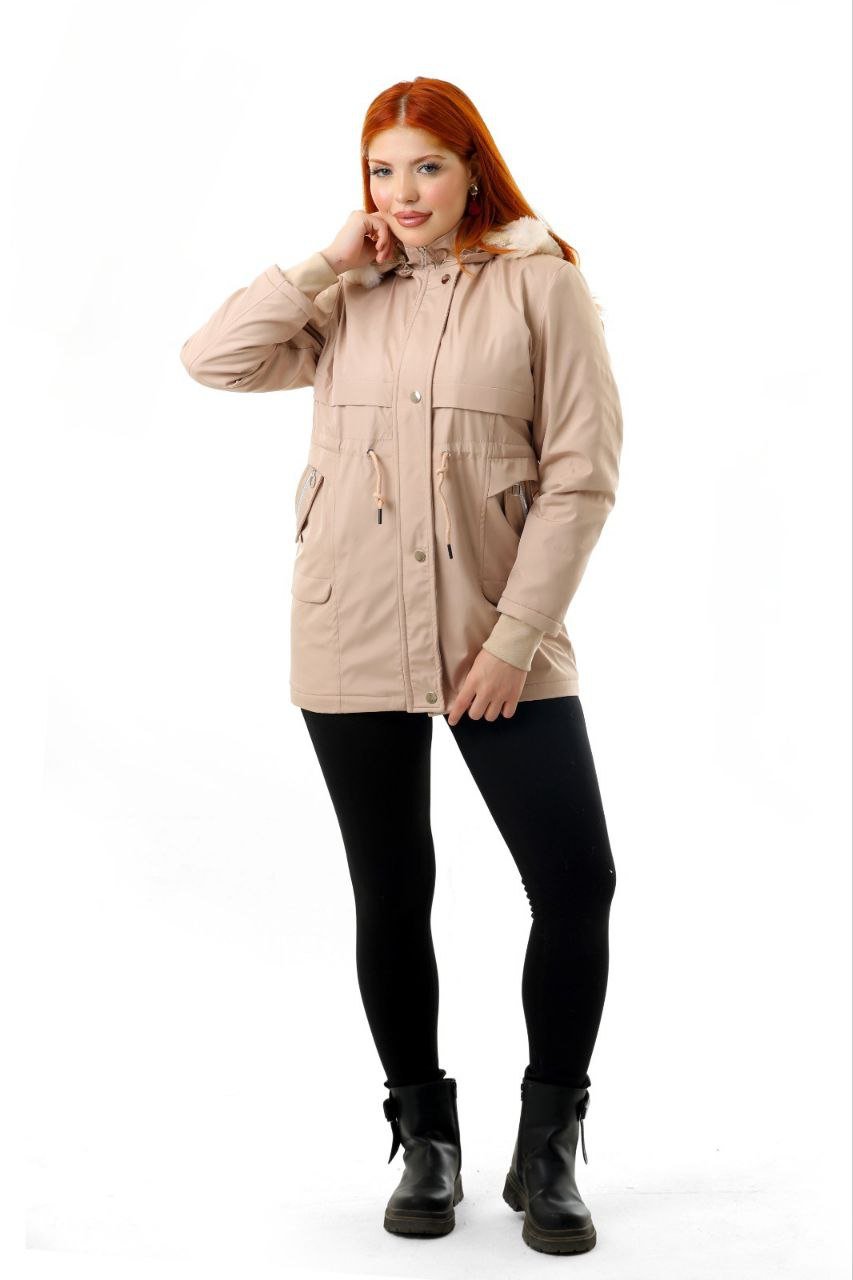 This women’s long waterproof winter jacket provides excellent protection against cold, wind, and rain. Designed with a stylish Blush Beige exterior and a soft fur-lined hood, it combines warmth with a clean, modern look. The jacket features a full zipper with snap buttons, adjustable waist drawstrings for a tailored fit, and multiple spacious pockets for convenience.